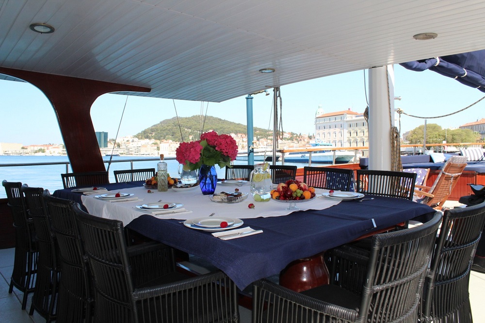 Barba can comfortably accommodate up to 12 guests in 6 cabins with en suite bathrooms and air-conditioning (1 master, two double VIP cabins and 3 twin cabins). All cabins have a lot of storage area, safety deposit boxes are available in master and VIP cabins. For your safety there is a fire protection system, life raft, life jackets, 6 safety pumps, GMDSS. Experienced and well-trained crew members are at your disposal and guarantee safe navigation at any time.