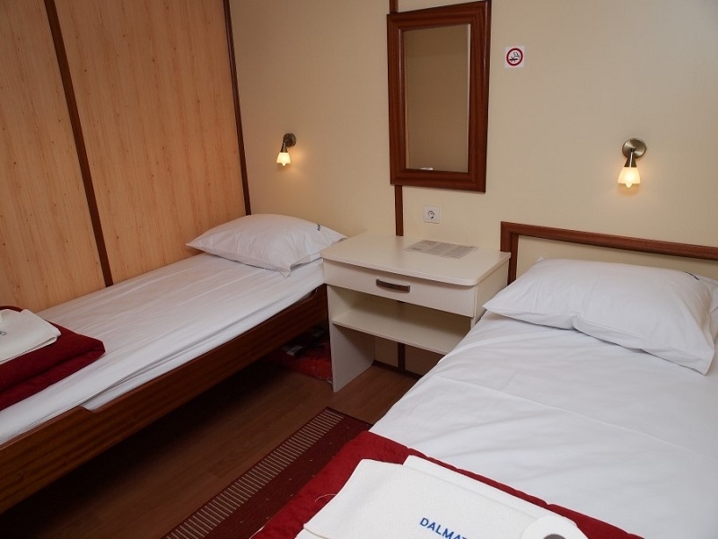 Our Dalmatia is part of premium category vessels we have in our offer and she can comfortably take up to 38 persons in 19 spacious air-conditioned triple or twin cabins. All cabins are equipped with private shower and toilet. On the main deck there are 9 twin and 2 triple cabins and lower deck has 2 triple and 6 twin cabins.