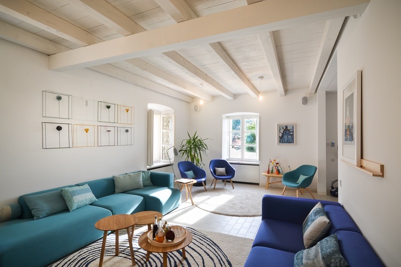 There is also a living area with another fully equipped and modern kitchen, 4 bedrooms on two floors with double beds that can be separated in twin beds. Modern design is enriched with 300 years old ceiling drawing, revealing the history of this villa.