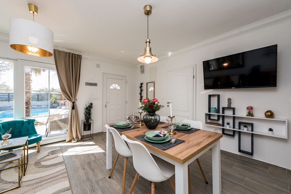 La moderna villa a tre stelle Mariza si trova vicino al centro di Sukosan, ottimo punto per visitare i parchi nazionali come Kornati, Krka o laghi di Plitvice. La posizione è tranquilla e perfetta per un gruppo di amici e familiari che vogliono avere la loro privacy. Trascorri le tue vacanze prendendo il sole sui lettini accanto alla piscina privata di 24 m2 (con riscaldamento) o rilassati sulla spiaggia che dista solo 300 m.